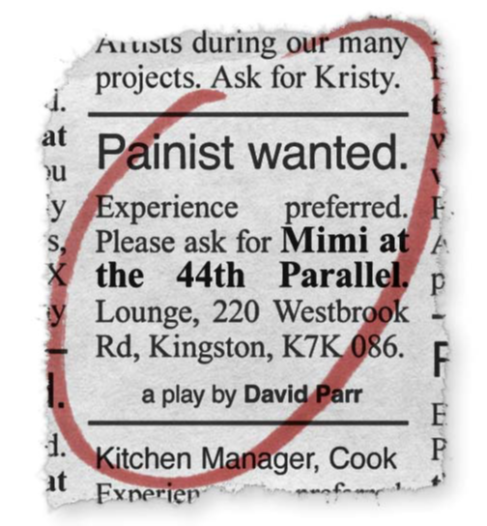 Nothing is quite as it seems at The 44th Parallel Lounge in remote Ontario where young pianist JIMMY DUNCAN goes in search of the father who abandoned him before he was born, despite the protestations of his high-strung fiancée, BITSY, and his rueful, volatile mother, ELIZABETH.
